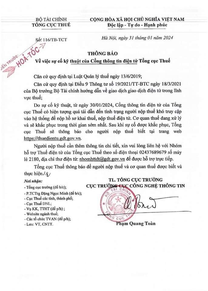 Chi cục Thuế Quận Bình Thạnh thông báo sự cố kỹ thuật của Cổng thông tin điện tử Tổng cục Thuế (Web: thuedientu.gdt.gov.vn)