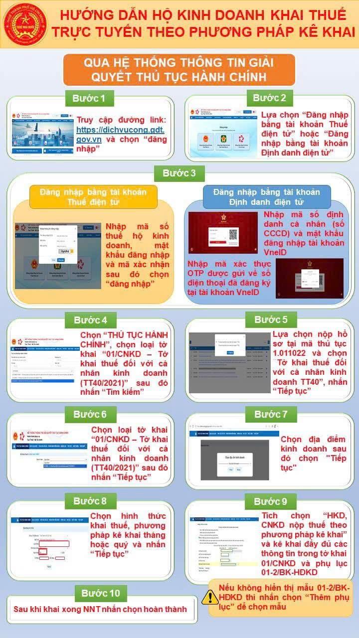 Thuế cơ sở 14 Thành phố Hồ Chí Minh hướng dẫn hộ kinh doanh khai thuế trực tuyến theo phương pháp kê khai qua Hệ thống thông tin giải quyết thủ tục hành chính.