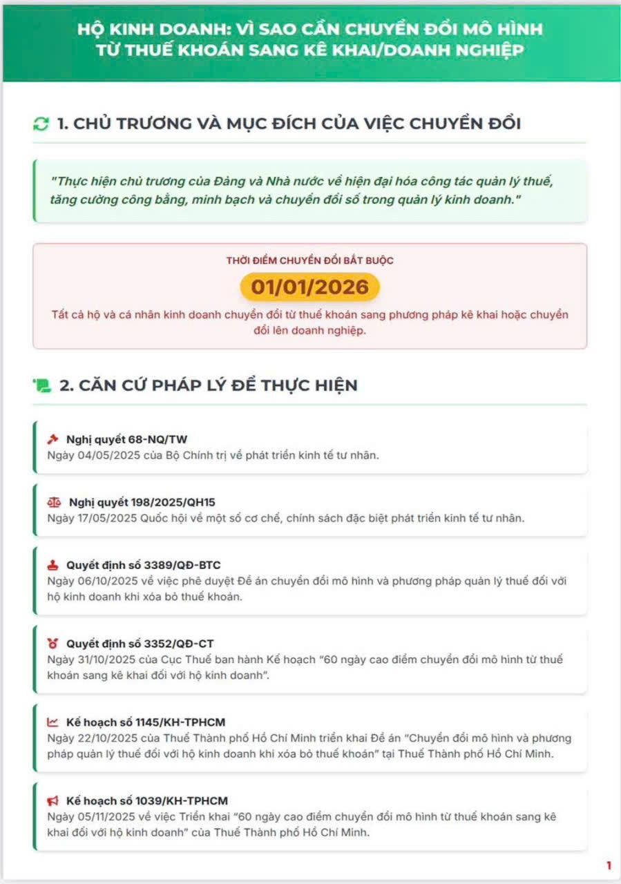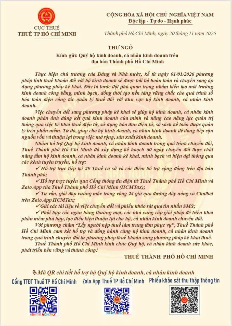 Thuế Thành phố Hồ Chí Minh hướng dẫn Hộ Kinh doanh chuyển đổi mô hình từ thuế khoán sang phương pháp kê khai và phát triển lên doanh nghiệp